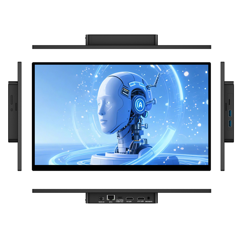 屏幕部分配备 1920×1080P 全高清显示,拥有 72% NTSC 广色域、400nits 高亮度、1200:1 对比度,呈现清晰、细腻、色彩准确的视觉体验。支持电容式十点触控,响应灵敏,操作流畅,可适用于数据监控、触控交互、设备控制等多种工业应用。